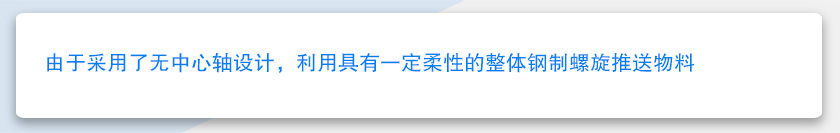 无轴螺旋输送机与传统有轴螺旋输送机相比,由于采用了无中心轴设计,利用具有一定柔性的整体钢制螺旋推送物料,因而具有以下突出优点:抗缠绕性强。